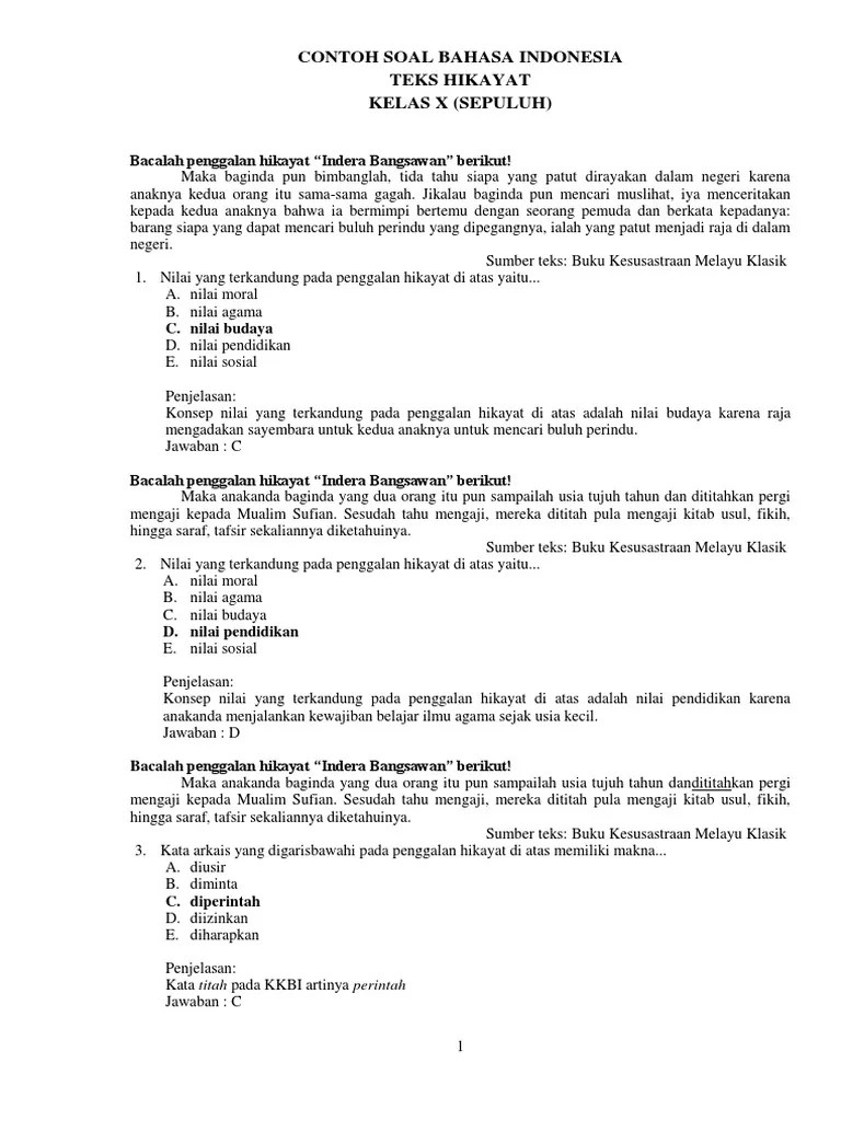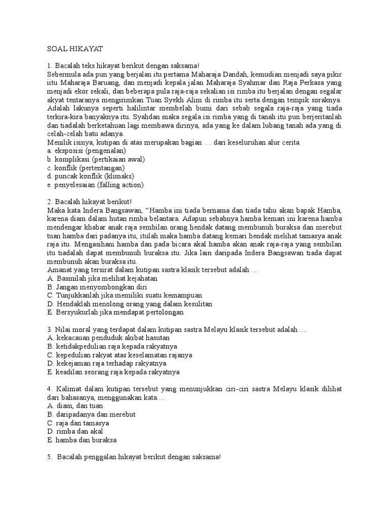 Contoh Soal Bahasa Indonesia Hikayat - Contoh Soal Hikayat Belajar / Hikayat mengisahkan kehidupan para raja dan kalangan bangsawan.. Pg soal bahasa indonesia beserta tanggapan serpihan kelima, berisikan bahan yang sama. Contoh soal teks cerpen dan kunci jawabannya ada sekitar 80 butir soal . Hikayat mengisahkan kehidupan para raja dan kalangan bangsawan. Berlatih mengerjakan soal memang seru, selain kita dipaksa belajar, juga melatih nalar kita . Sastra melayu klasik (hikayat) kelas x.